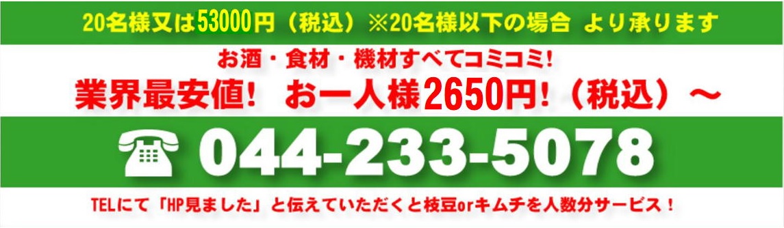 BBQ食材+お飲み物+備品類などすべて込みでお一人様 2,650円(税込)